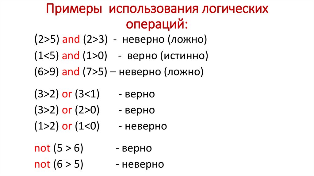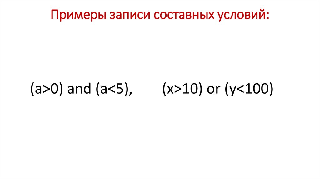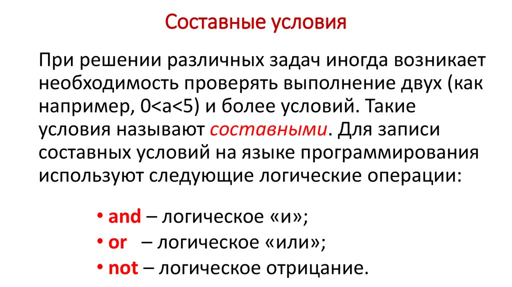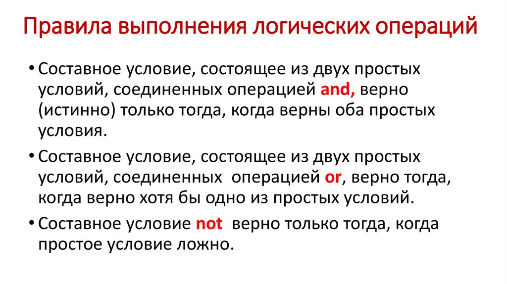Правила выполнения логических операций• Составное условие, состоящее из двух простых