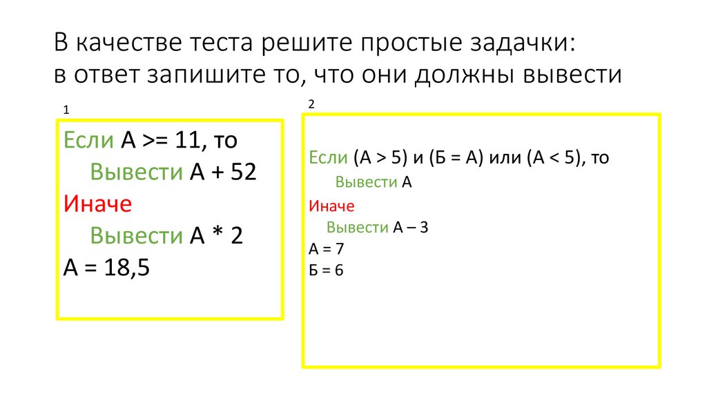 В качестве теста решите простые задачки:в ответ запишите то, что они должны вывести