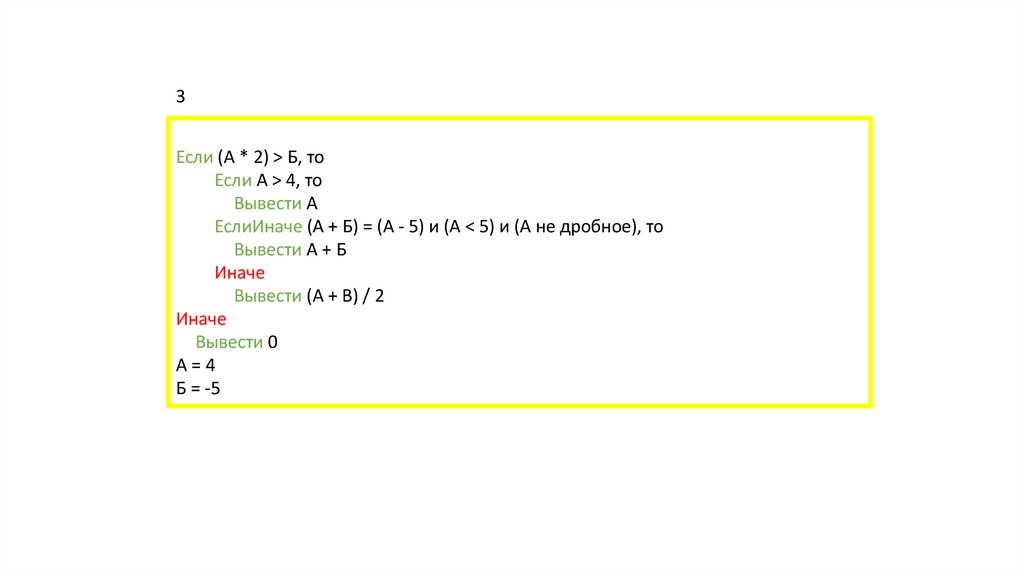 ЕслиИначе (А + Б) = (А - 5) и (А < 5) и (А не дробное), то