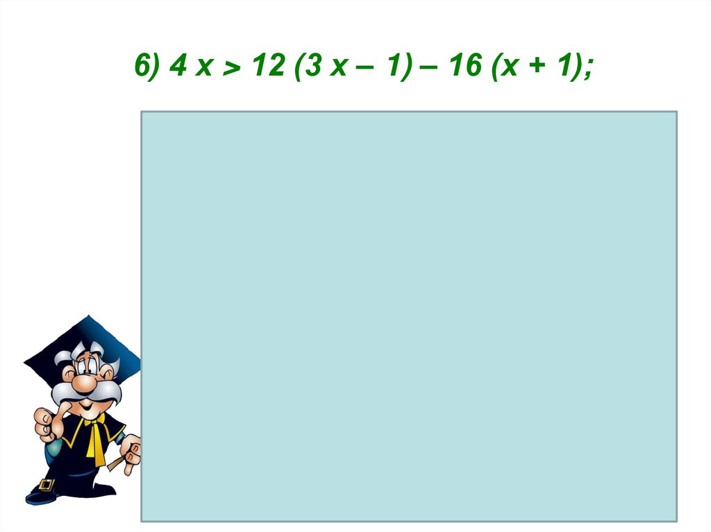 6) 4 х > 12 (3 х – 1) – 16 (х + 1);4 х > 36 х – 12 – 16 х – 16;