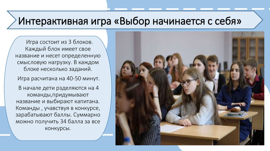 Интерактивная игра «Выбор начинается с себя»Игра состоит из 3 блоков.