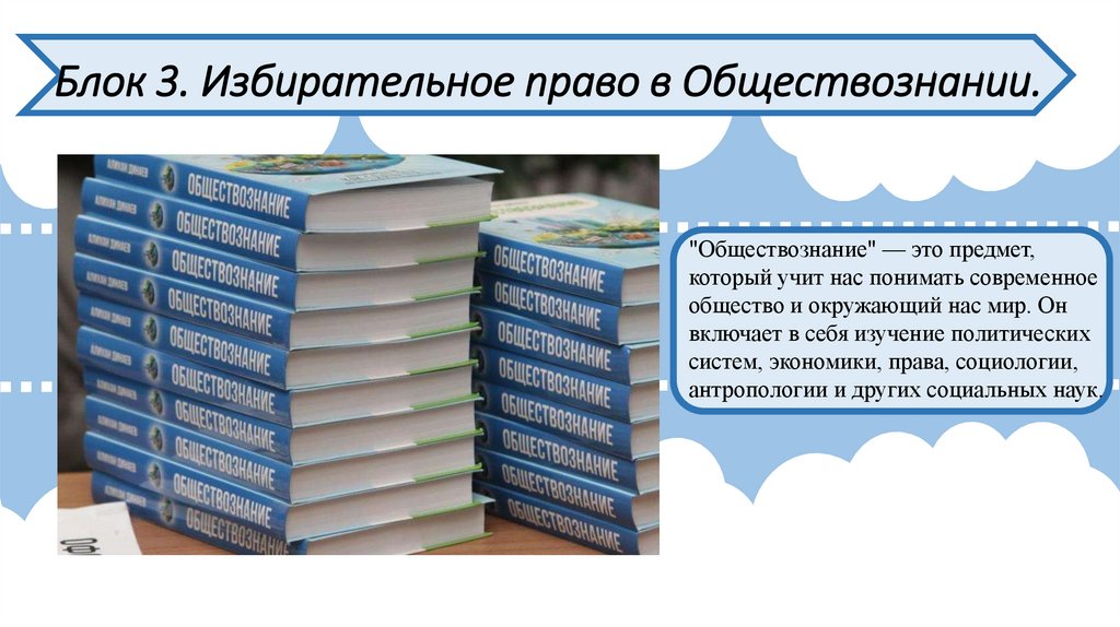 Блок 3. Избирательное право в Обществознании."Обществознание" — это предмет,