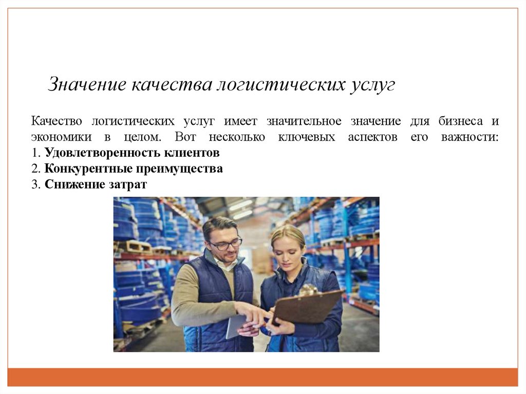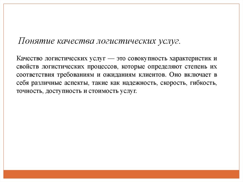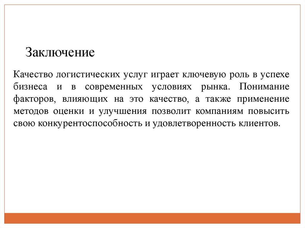 ЗаключениеКачество логистических услуг играет ключевую роль в успехе