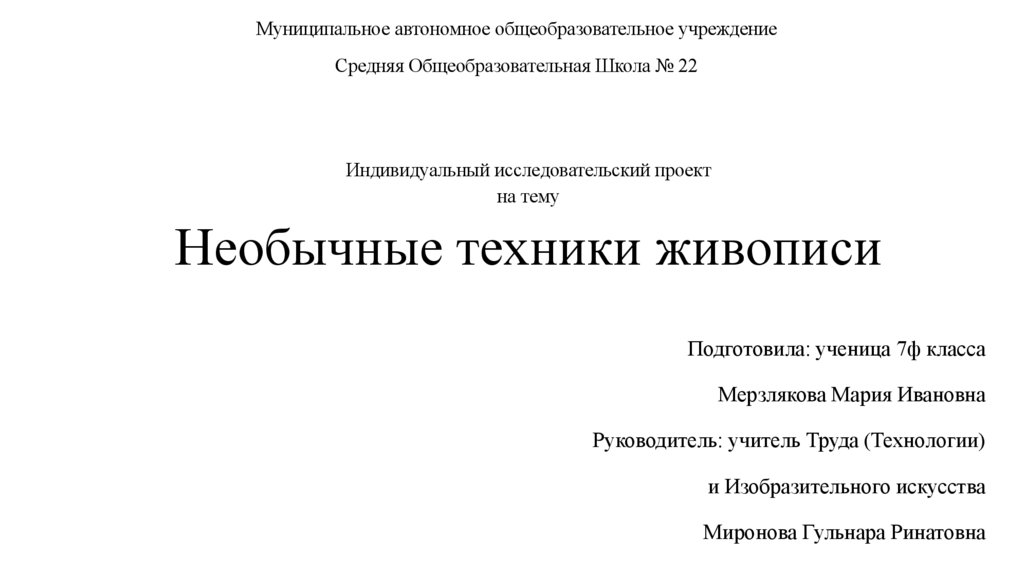 Муниципальное автономное общеобразовательное учреждениеСредняя Общеобразовательная Школа № 22