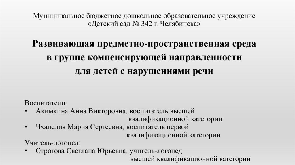 Муниципальное бюджетное дошкольное образовательное учреждение«Детский сад № 342 г. Челябинска»