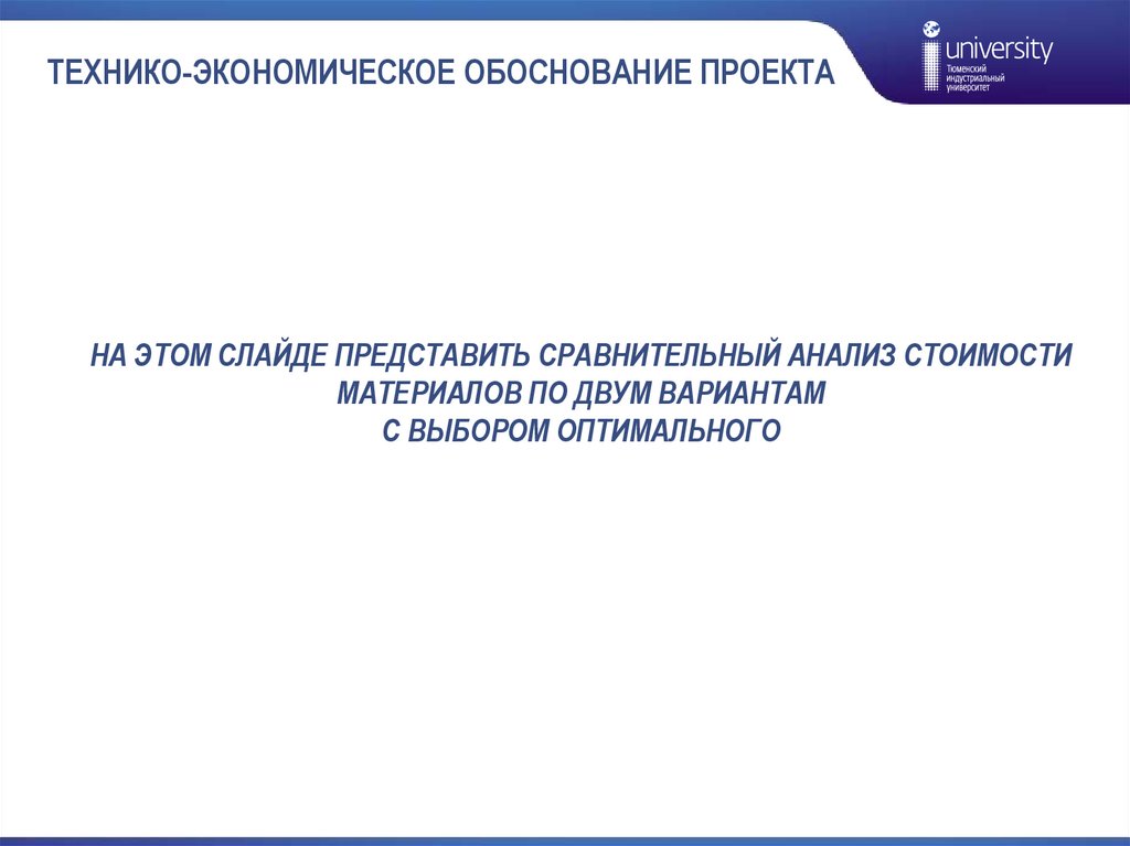 ТЕХНИКО-ЭКОНОМИЧЕСКОЕ ОБОСНОВАНИЕ ПРОЕКТАНА ЭТОМ СЛАЙДЕ ПРЕДСТАВИТЬ СРАВНИТЕЛЬНЫЙ АНАЛИЗ СТОИМОСТИ