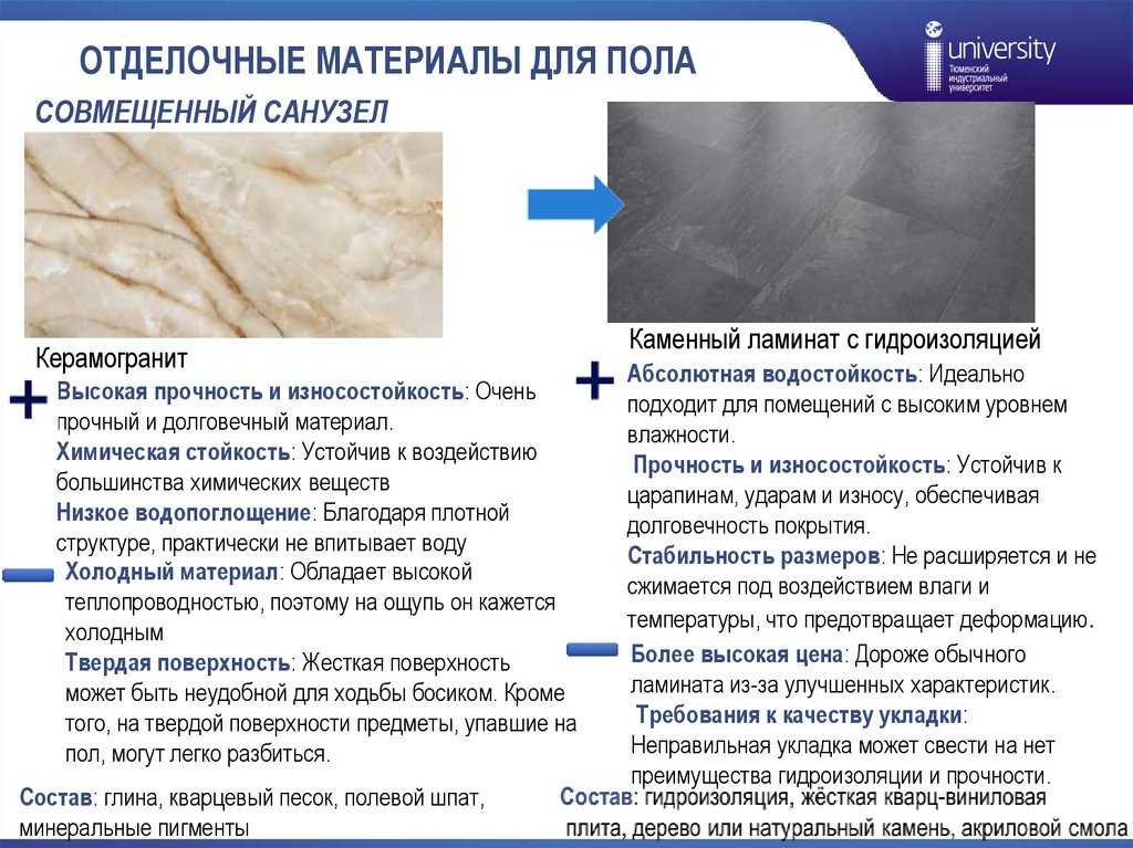 стандартам комфорта и энергоэффективности каменный ламинат с теплым полом, а для ванной