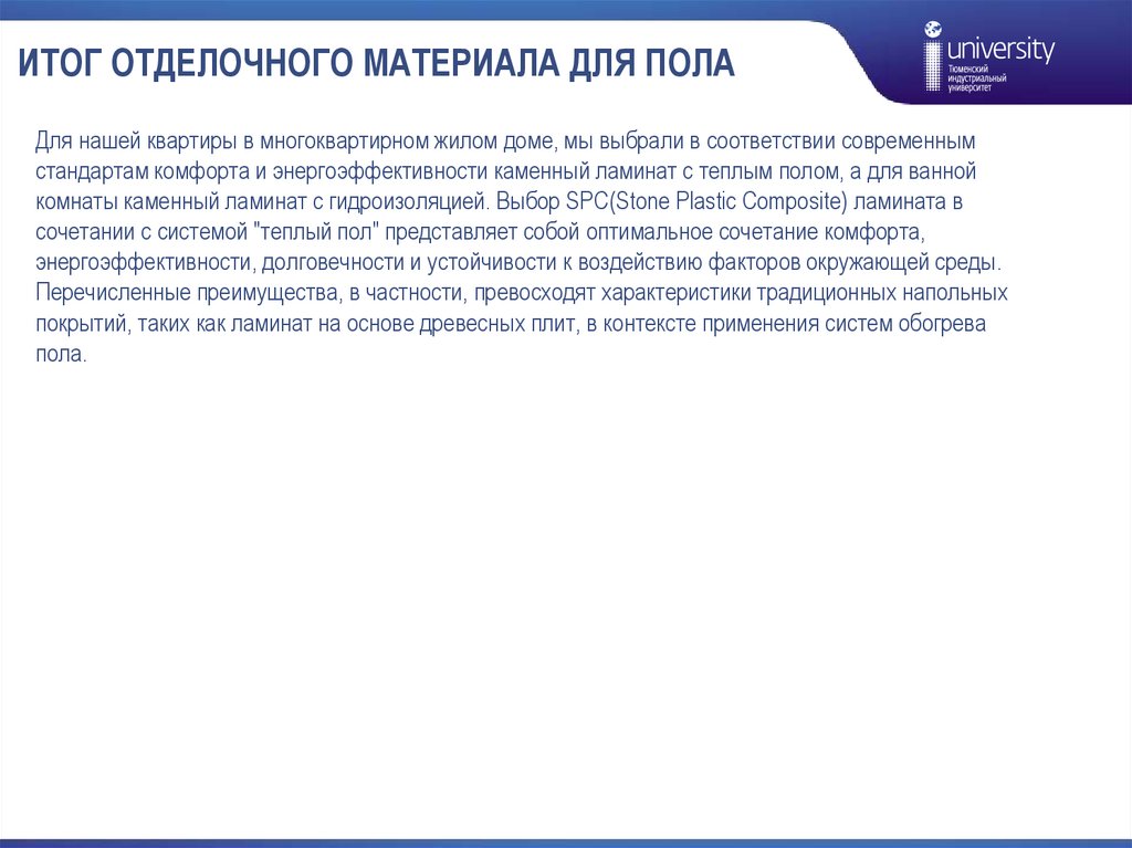 ИТОГ ОТДЕЛОЧНОГО МАТЕРИАЛА ДЛЯ ПОЛАДля нашей квартиры в многоквартирном жилом доме, мы выбрали в соответствии современным