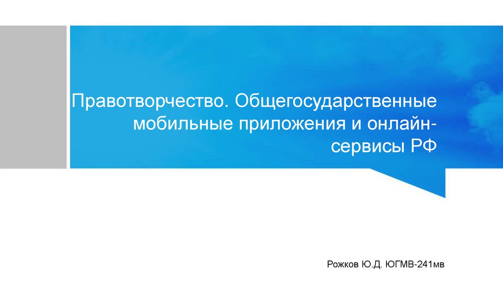 Правотворчество. Общегосударственныемобильные приложения и онлайнсервисы РФ