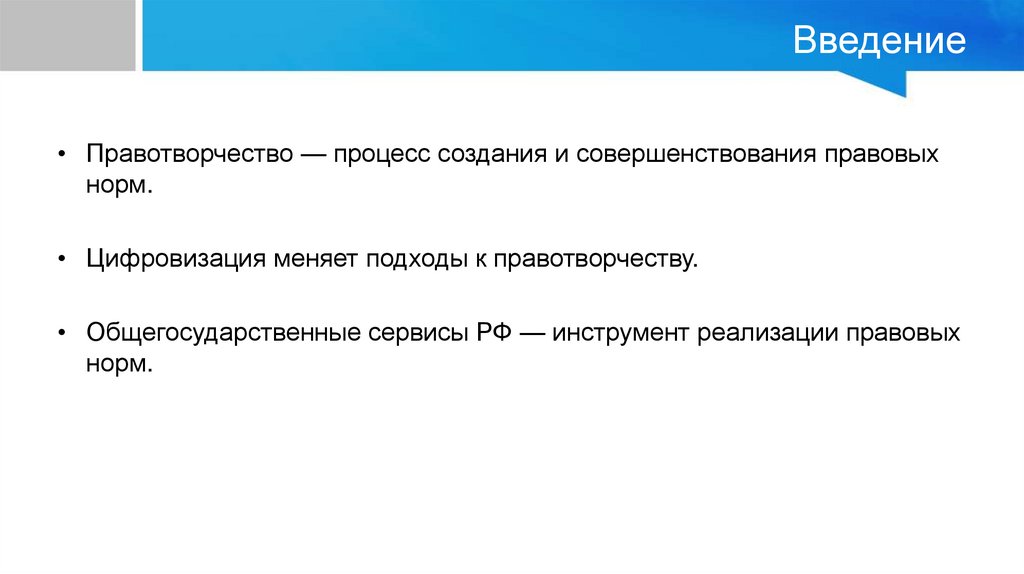 Введение• Правотворчество — процесс создания и совершенствования правовых