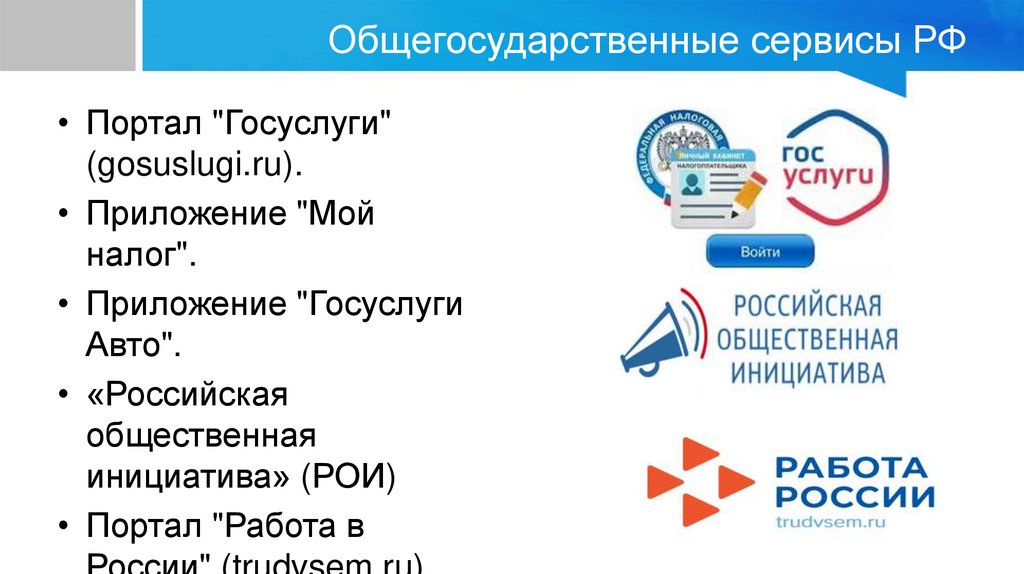Общегосударственные сервисы РФ• Портал "Госуслуги"
