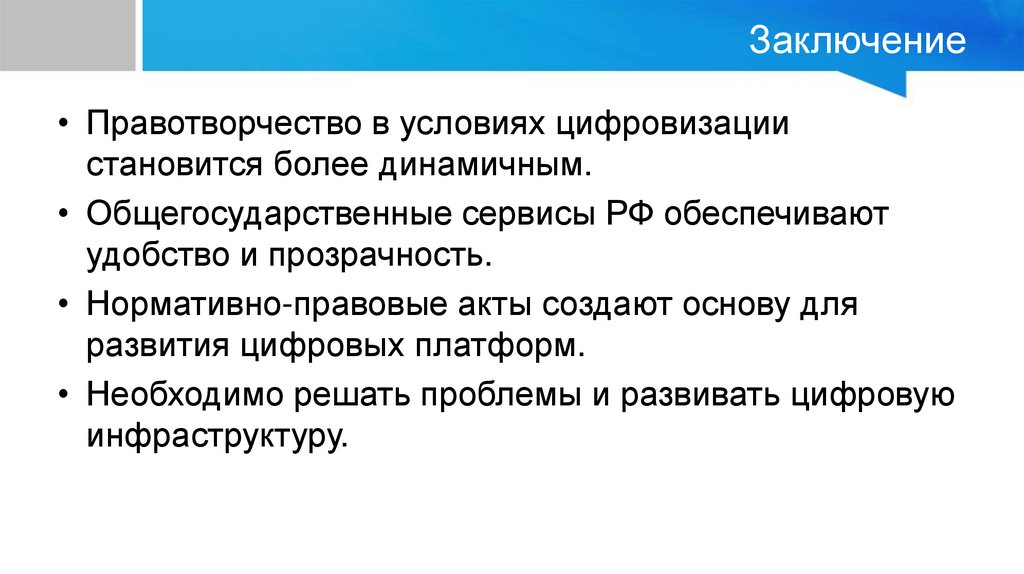 Заключение• Правотворчество в условиях цифровизации