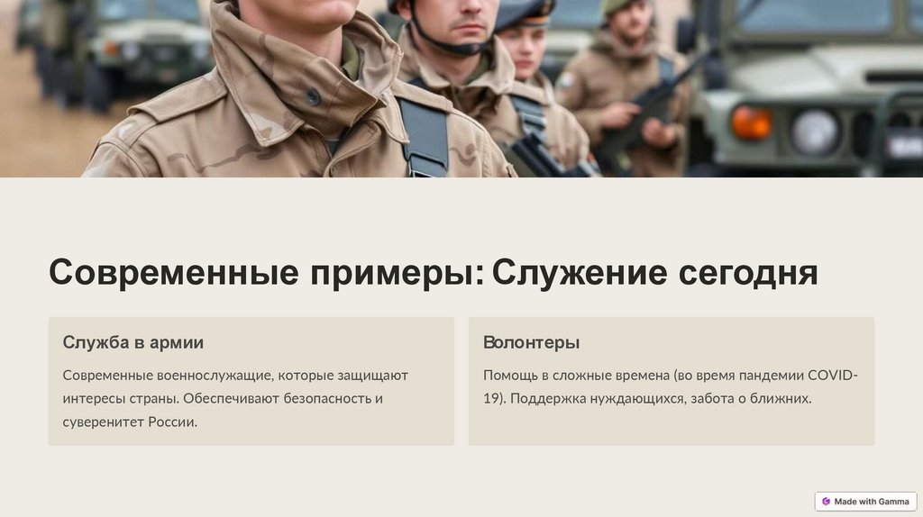 Современные примеры: Служение сегодняСлужба в армии