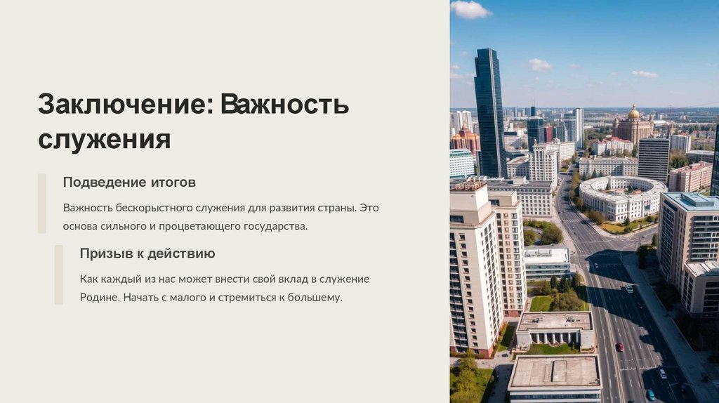 Важность бескорыстного служения для развития страны. Это