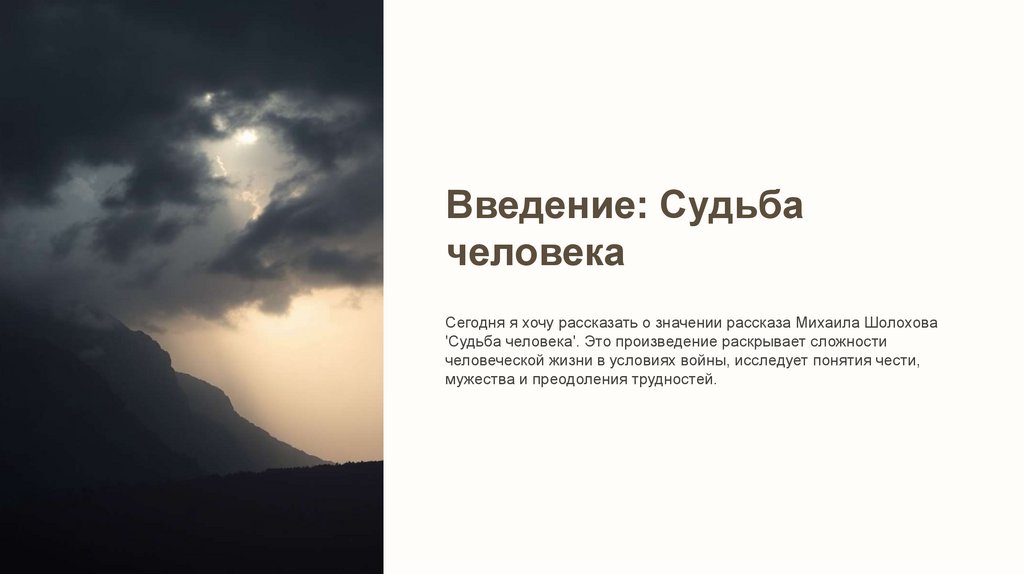 Тема человеческой судьбы пронизывает все произведение, делая его актуальным и сегодня.