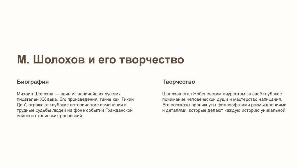 Шолохов стал Нобелевским лауреатом за своё глубокое