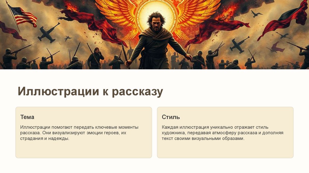Основные символы произведения — это война и мир, надежда и отчаяние.