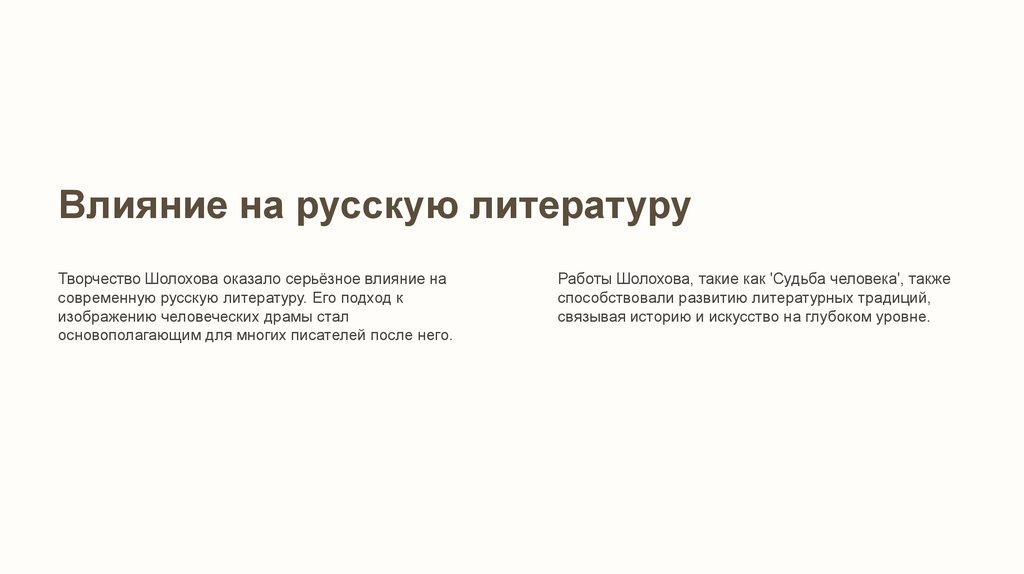Влияние на русскую литературуТворчество Шолохова оказало серьёзное влияние на