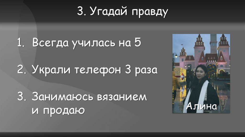 3. Угадай правду1. Всегда училась на 5