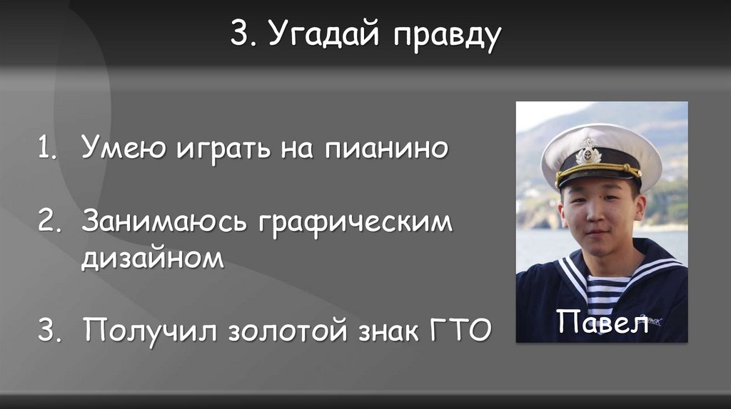 3. Угадай правду1. Занимаюсь вокалом
