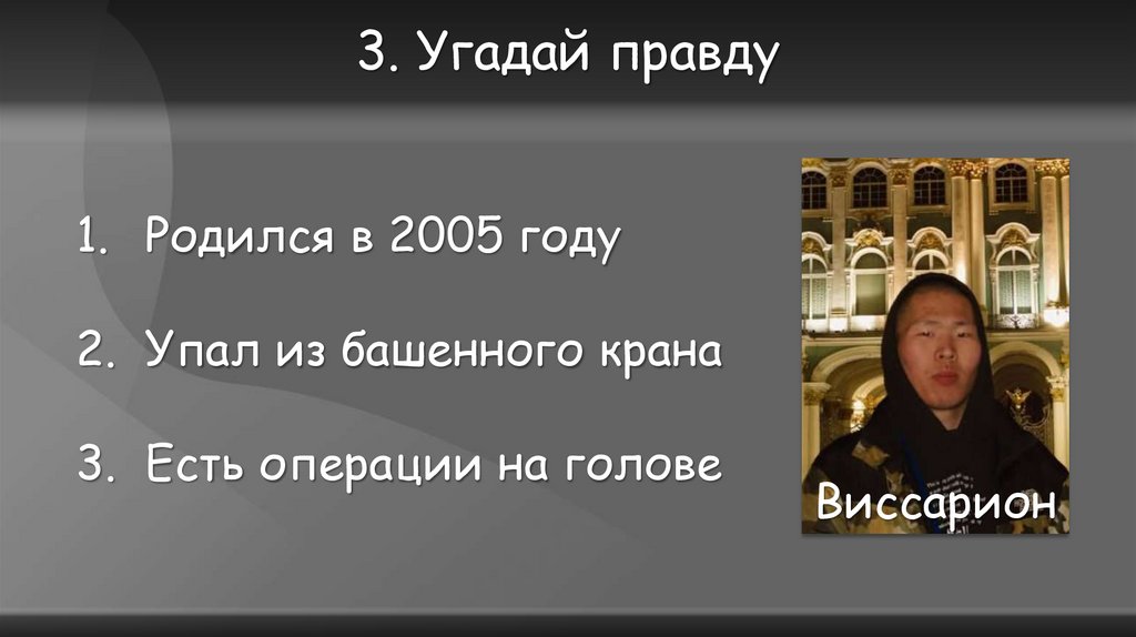 3. Угадай правду1. Родился в 2005 году