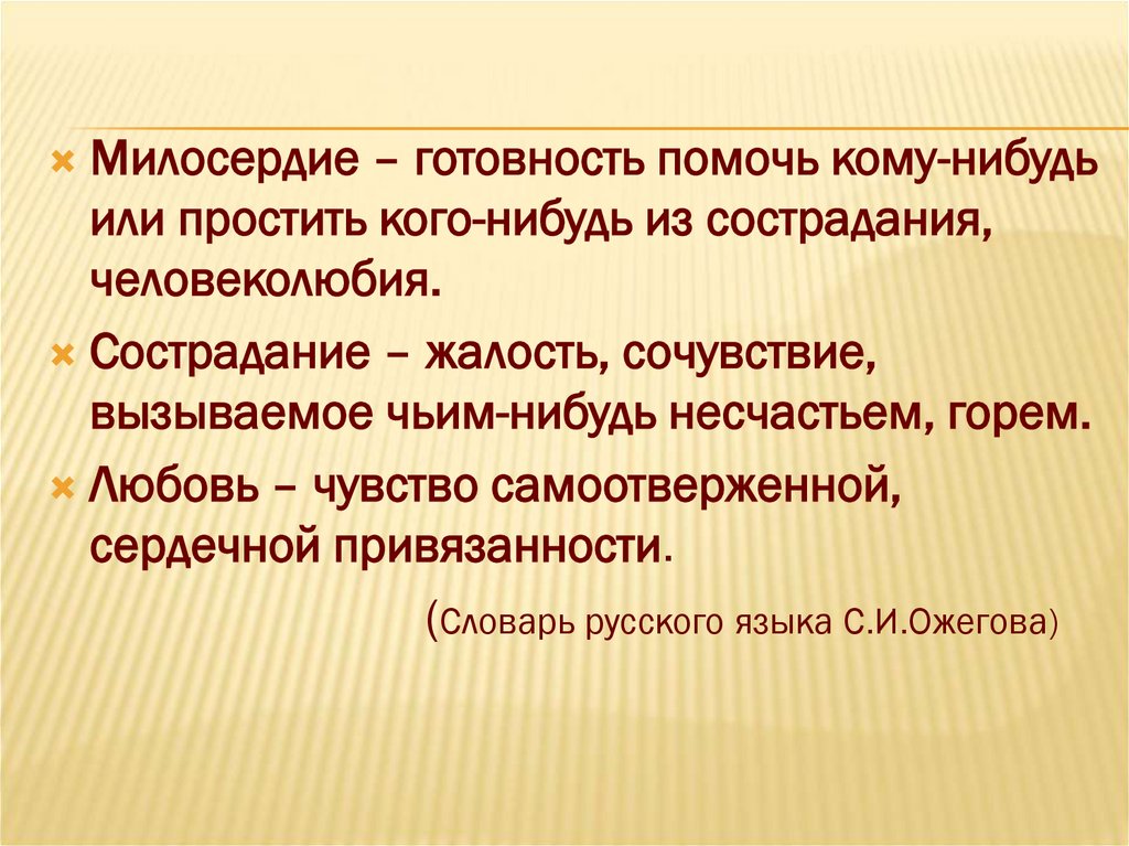 Милосердие – готовность помочь кому-нибудьили простить кого-нибудь из сострадания,