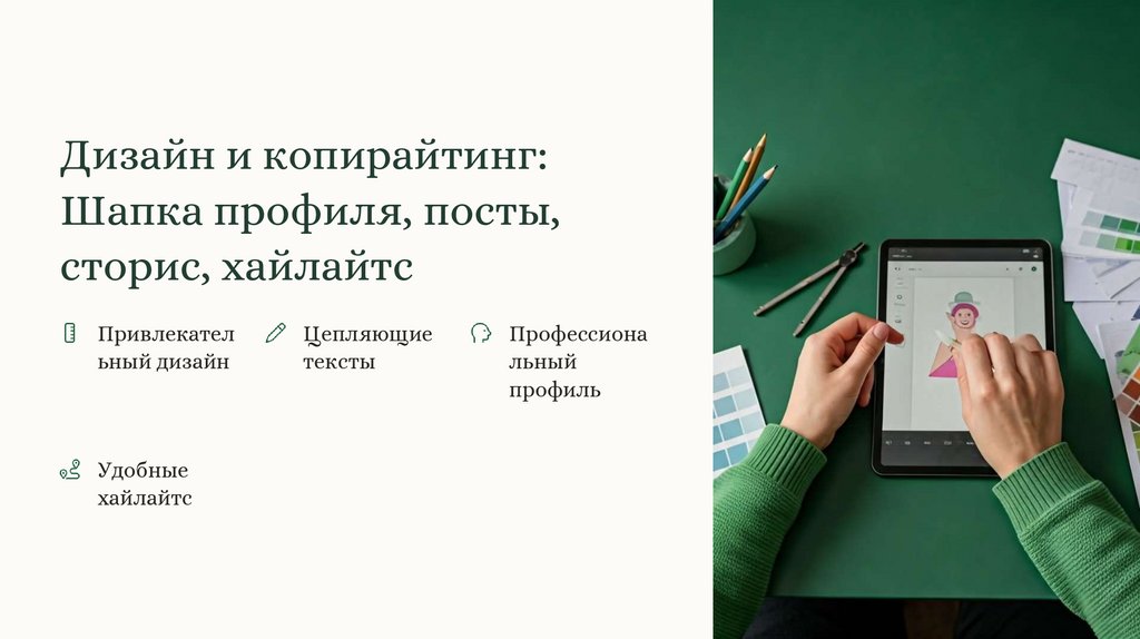 Дизайн и копирайтинг:Шапка профиля, посты,