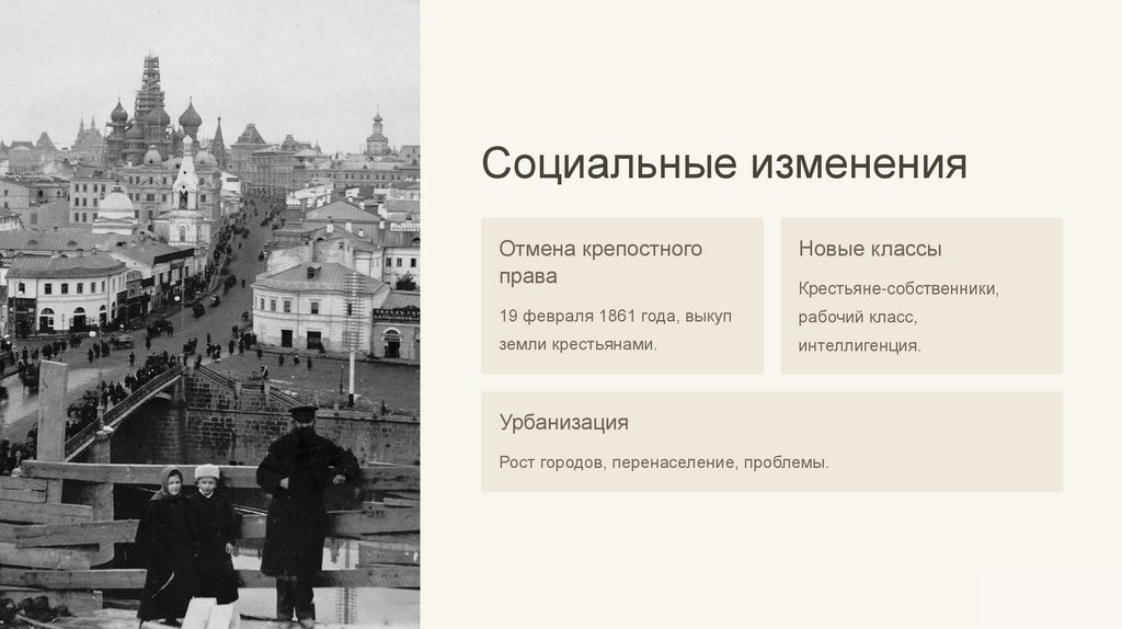 Социальные измененияОтмена крепостного