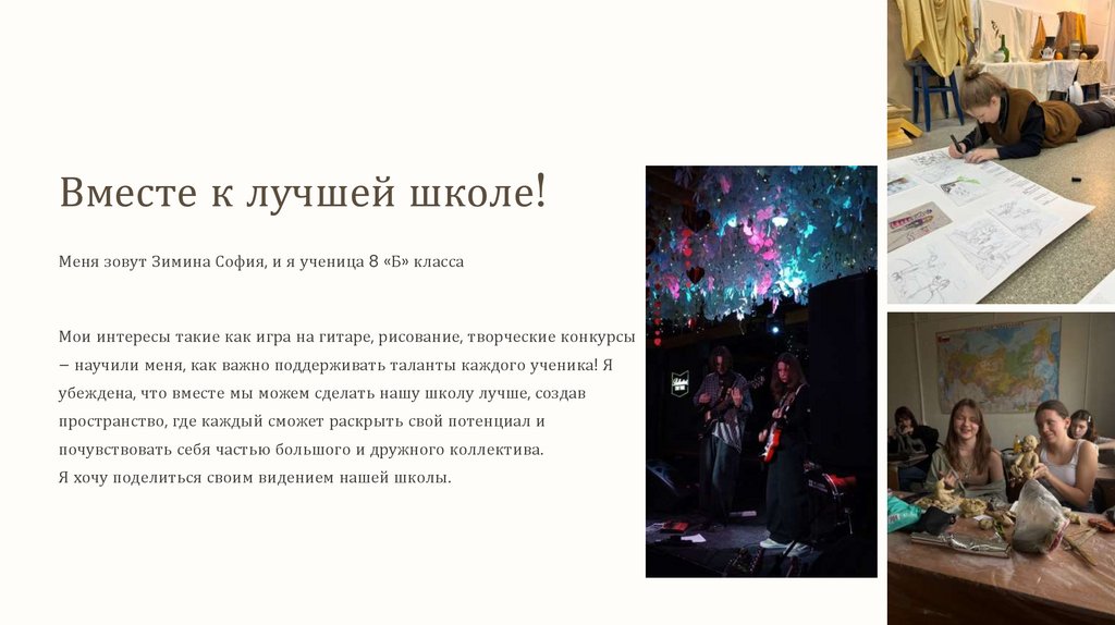 Вместе к лучшей школе!Меня зовут Зимина София, и я ученица 8 «Б» класса