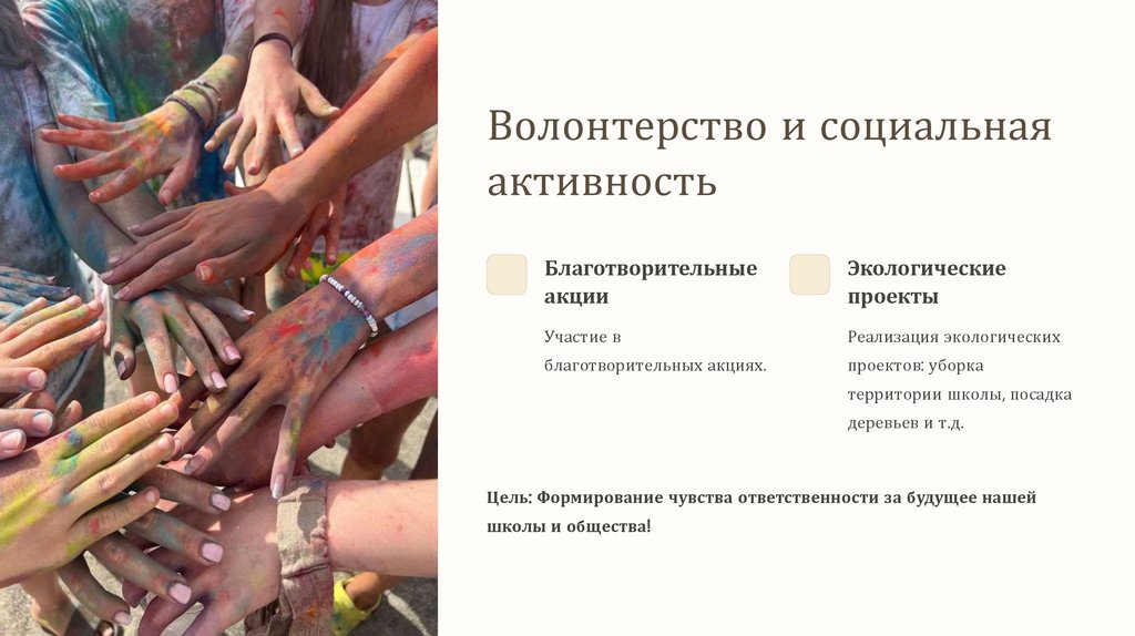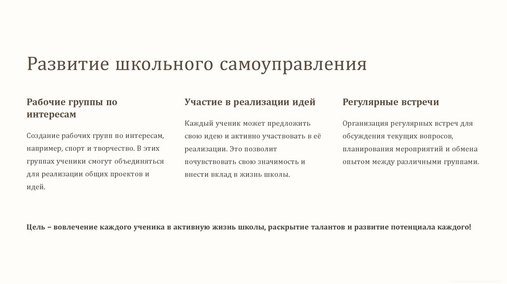 Цель - вовлечение каждого ученика в активную жизнь школы, раскрытие талантов и развитие потенциала каждого!