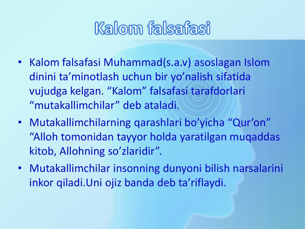 vujudga kelgan. “Kalom” falsafasi tarafdorlari