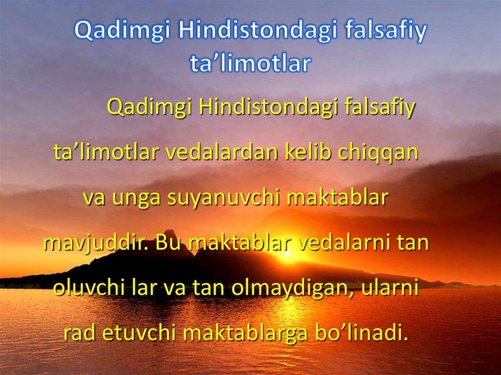 Qadimgi Hindistondagi falsafiyta’limotlar vedalardan kelib chiqqan