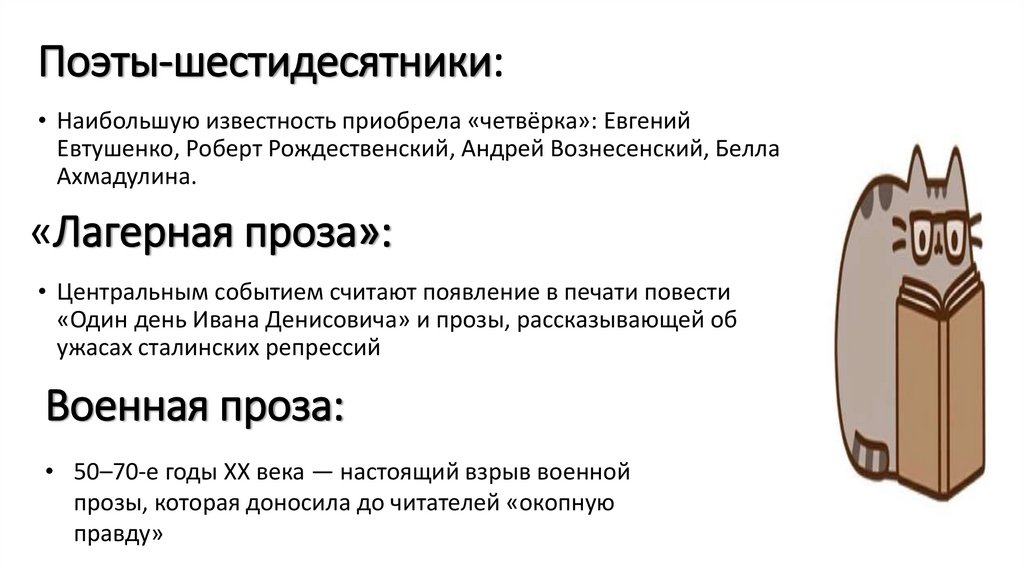 Поэты-шестидесятники:• Наибольшую известность приобрела «четвёрка»: Евгений