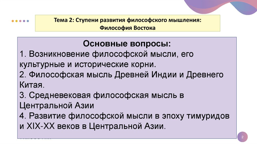 Тема 2: Ступени развития философского мышления:Философия Востока