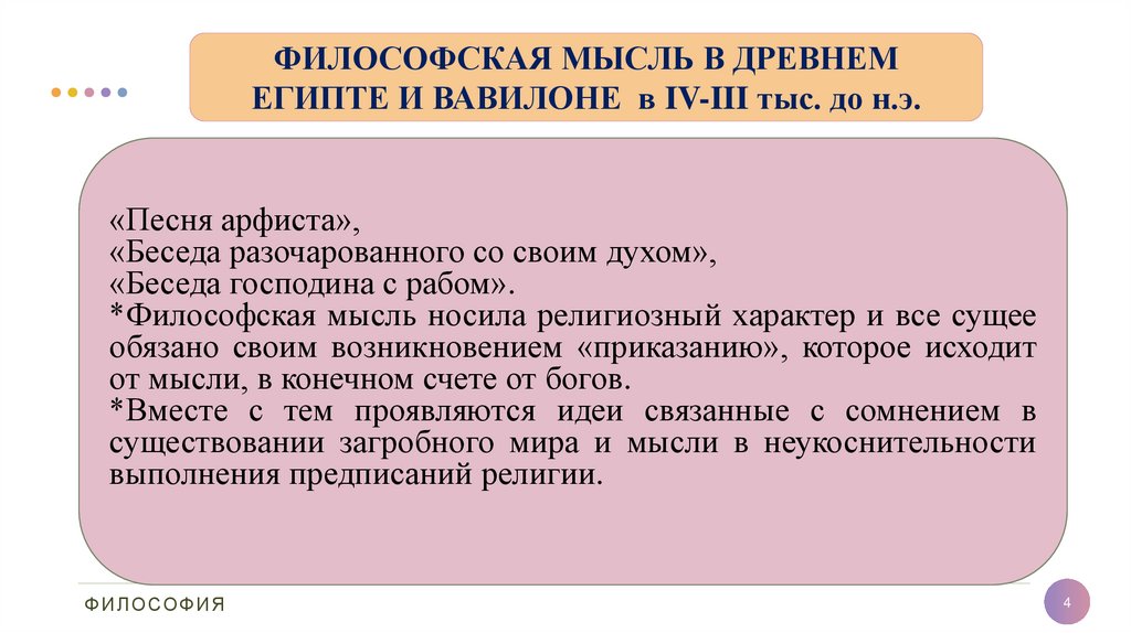 ФИЛОСОФСКАЯ МЫСЛЬ В ДРЕВНЕМЕГИПТЕ И ВАВИЛОНЕ в IV-III тыс. до н.э.
