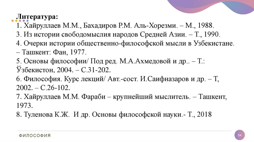 4. Очерки истории общественно-философской мысли в Узбекистане.