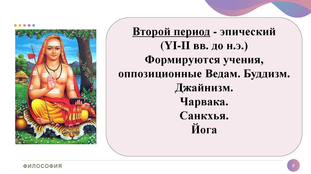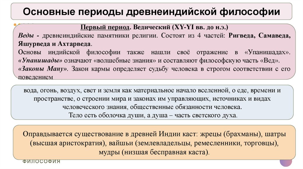 Основные периоды древнеиндийской философииПервый период. Ведический (XY-YI вв. до н.э.)