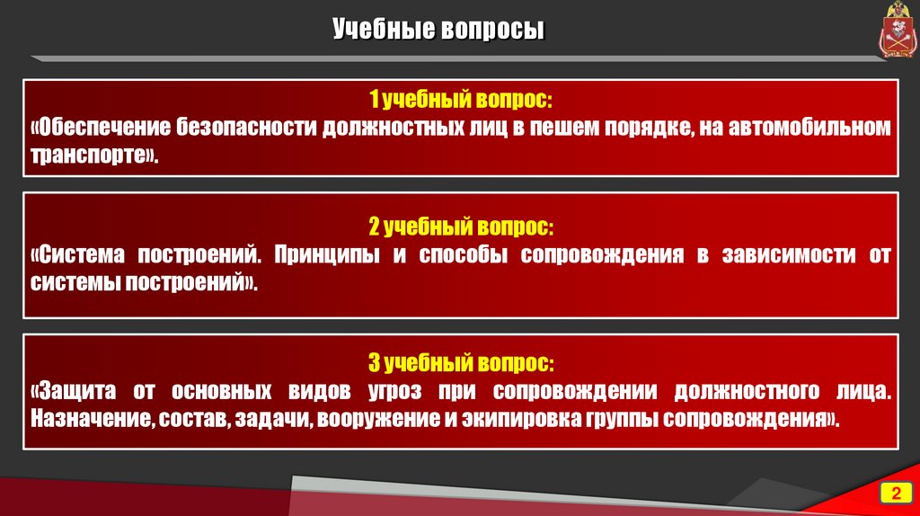 ЗАНЯТИЕ № 1: «Обеспечение безопасности должностных лиц в
