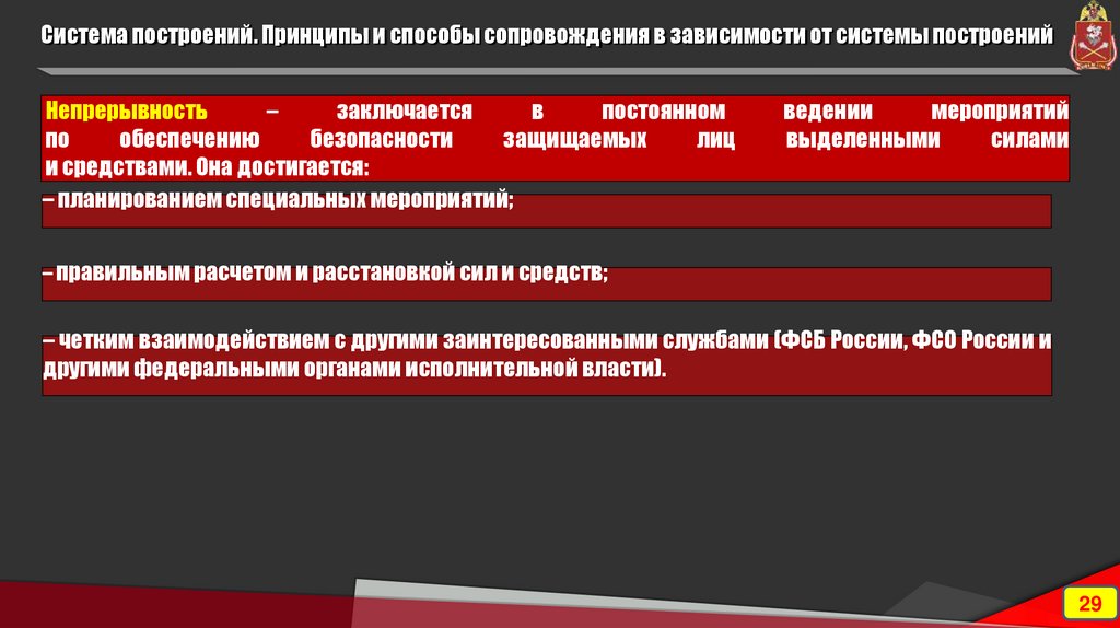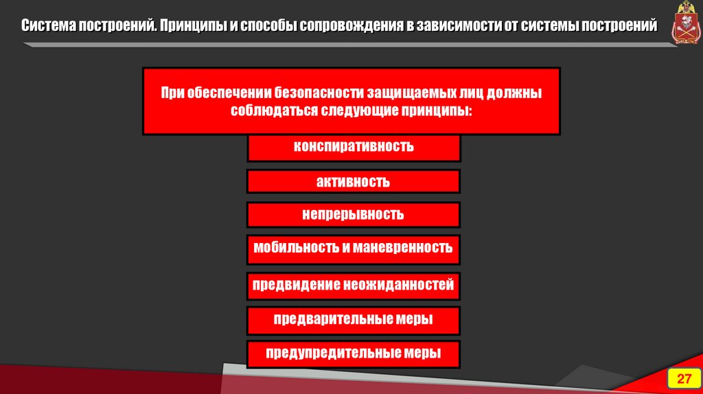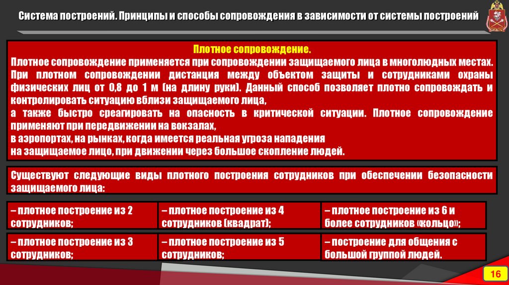 для обеспечения безопасности охраняемых лиц, и боевой порядок зависят