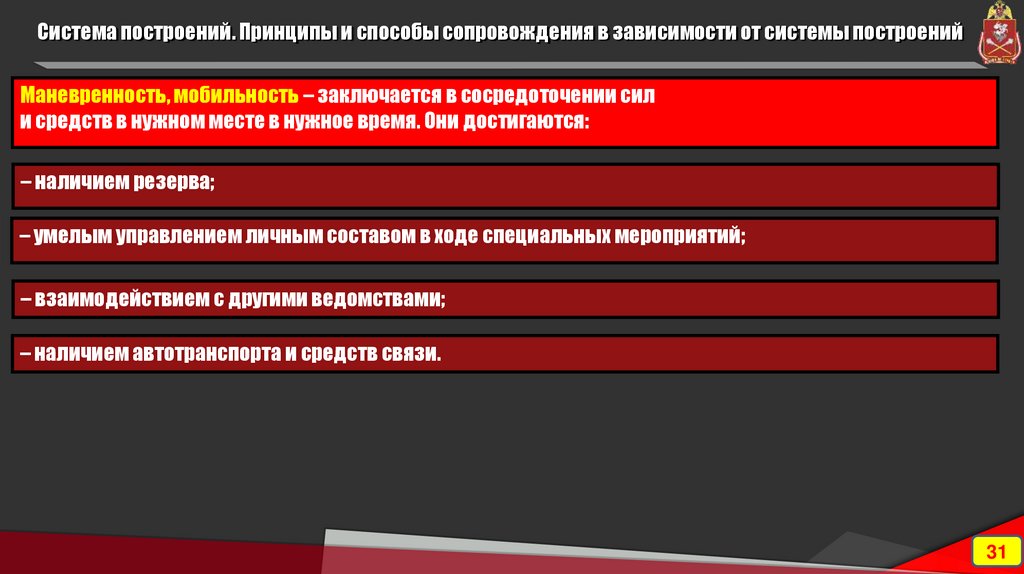 «Система построений. Принципы и способы сопровождения в зависимости от
