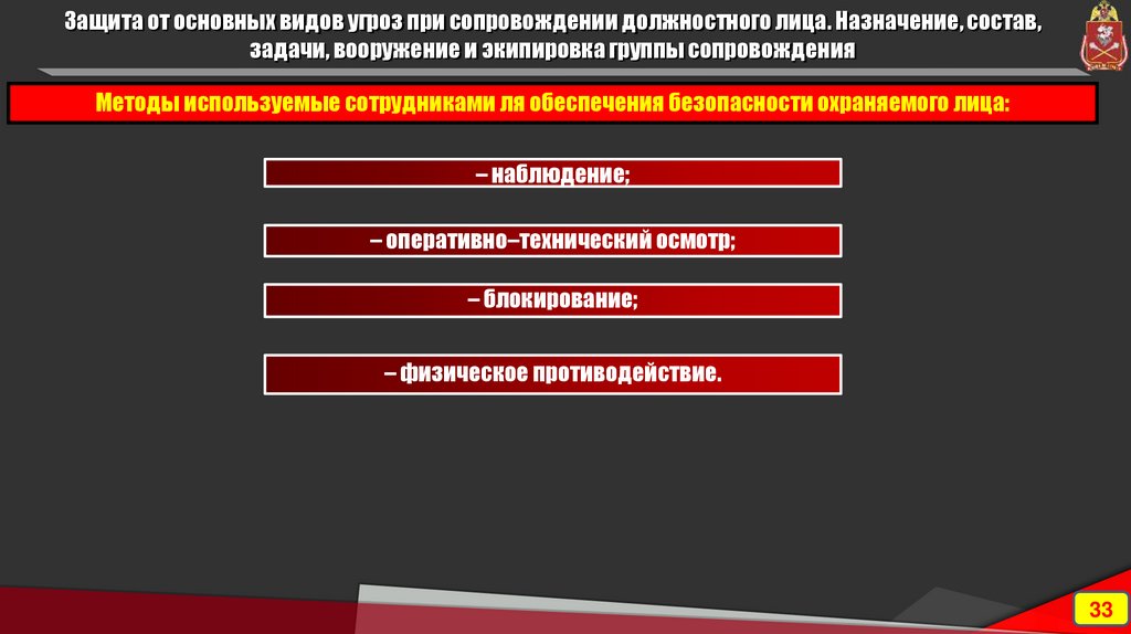 «Защита от основных видов угроз при сопровождении должностного лица.