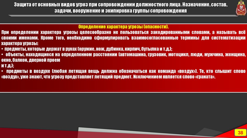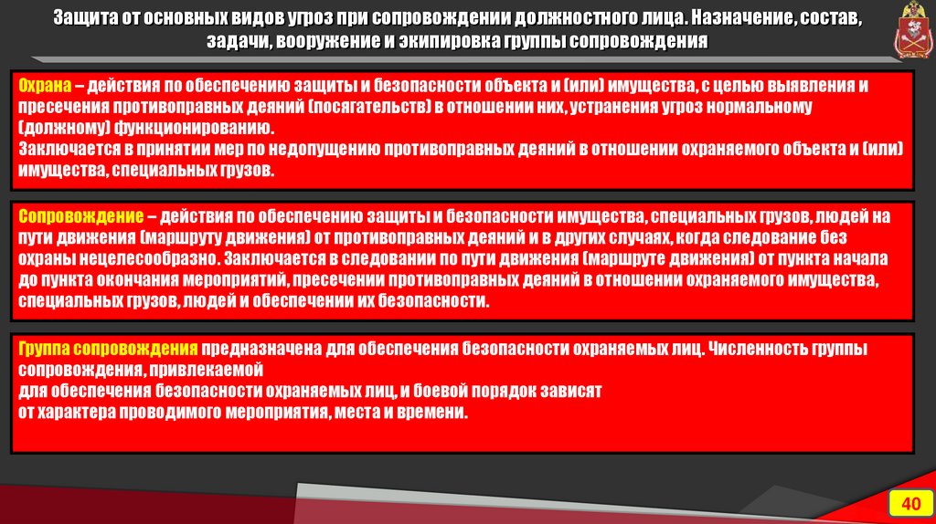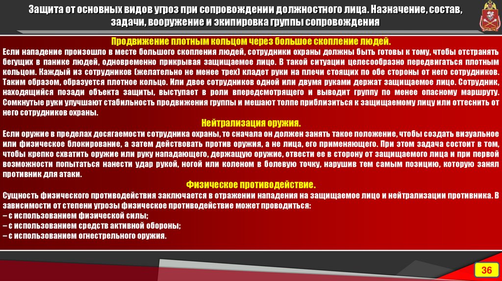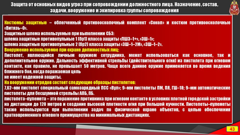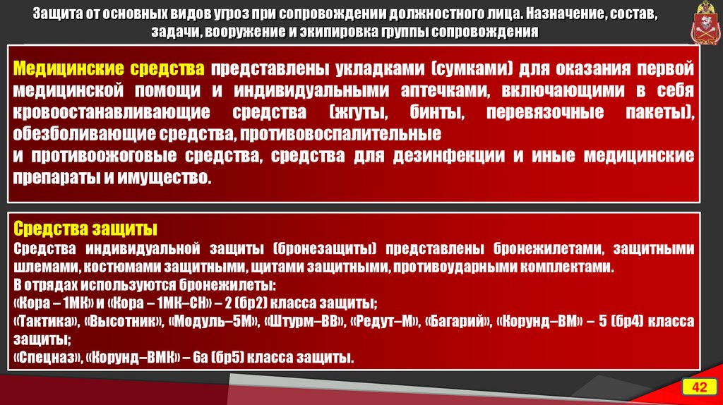 3. Защита от основных видов угроз при сопровождении должностного лица. Назначение,