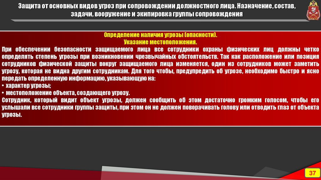 что угроза находится сзади от защищаемого лица и так далее. Каждый сотрудник воспринимая информацию о месте
