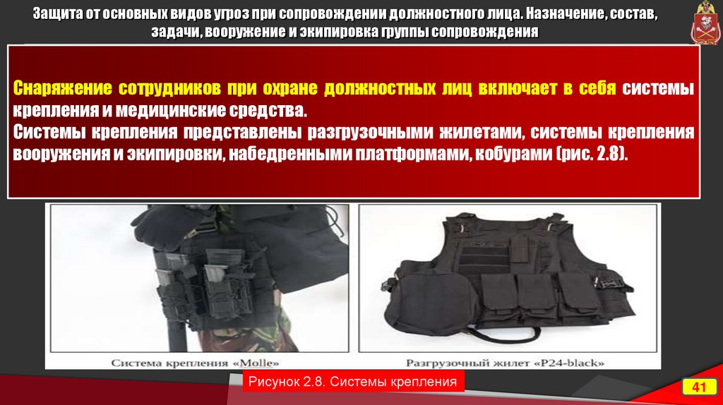 Снаряжение сотрудников при охране должностных лиц включает в себя системы