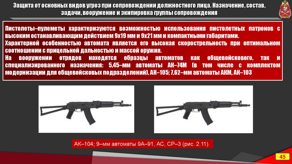 модернизации для общевойсковых подразделений), АК–105; 7,62–мм автоматы АКМ, АК–103