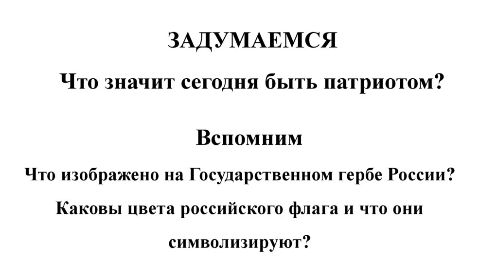 ЗАДУМАЕМСЯЧто значит сегодня быть патриотом?