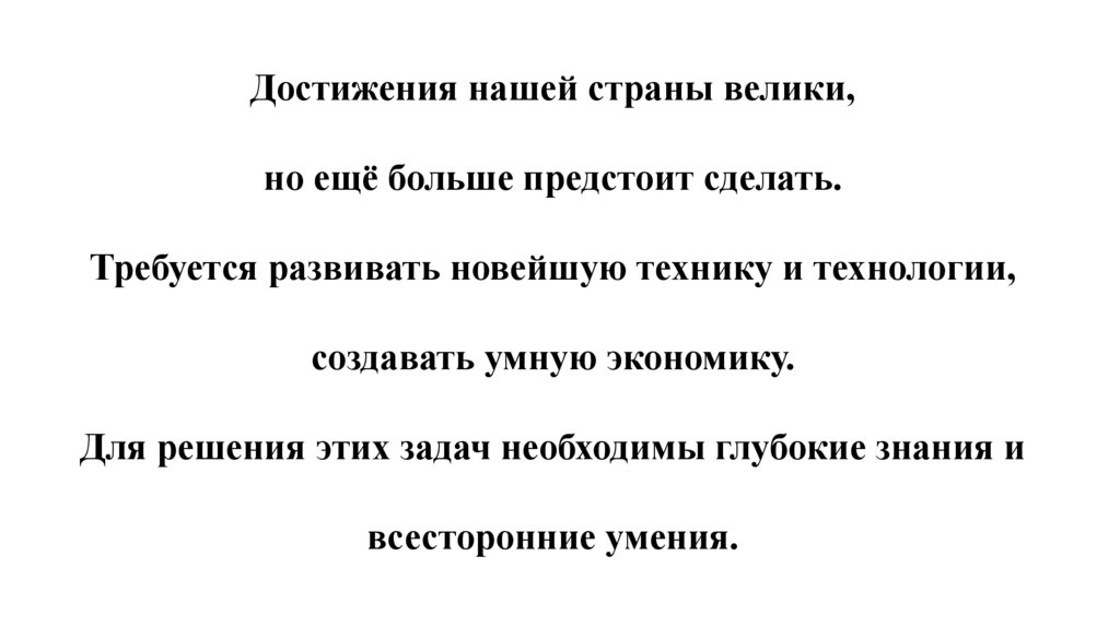 Достижения нашей страны велики,но ещё больше предстоит сделать.