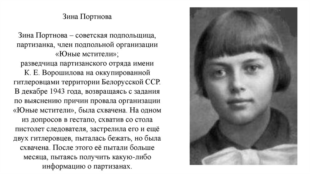 Зина ПортноваЗина Портнова – советская подпольщица,