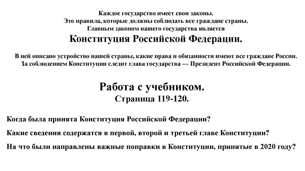В ней описано устройство нашей страны, какие права и обязанности имеют все граждане России.