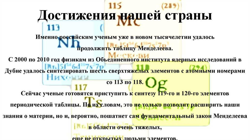 знания о материи, но и, вероятно, пошатнет сам фундаментальный закон Менделеева